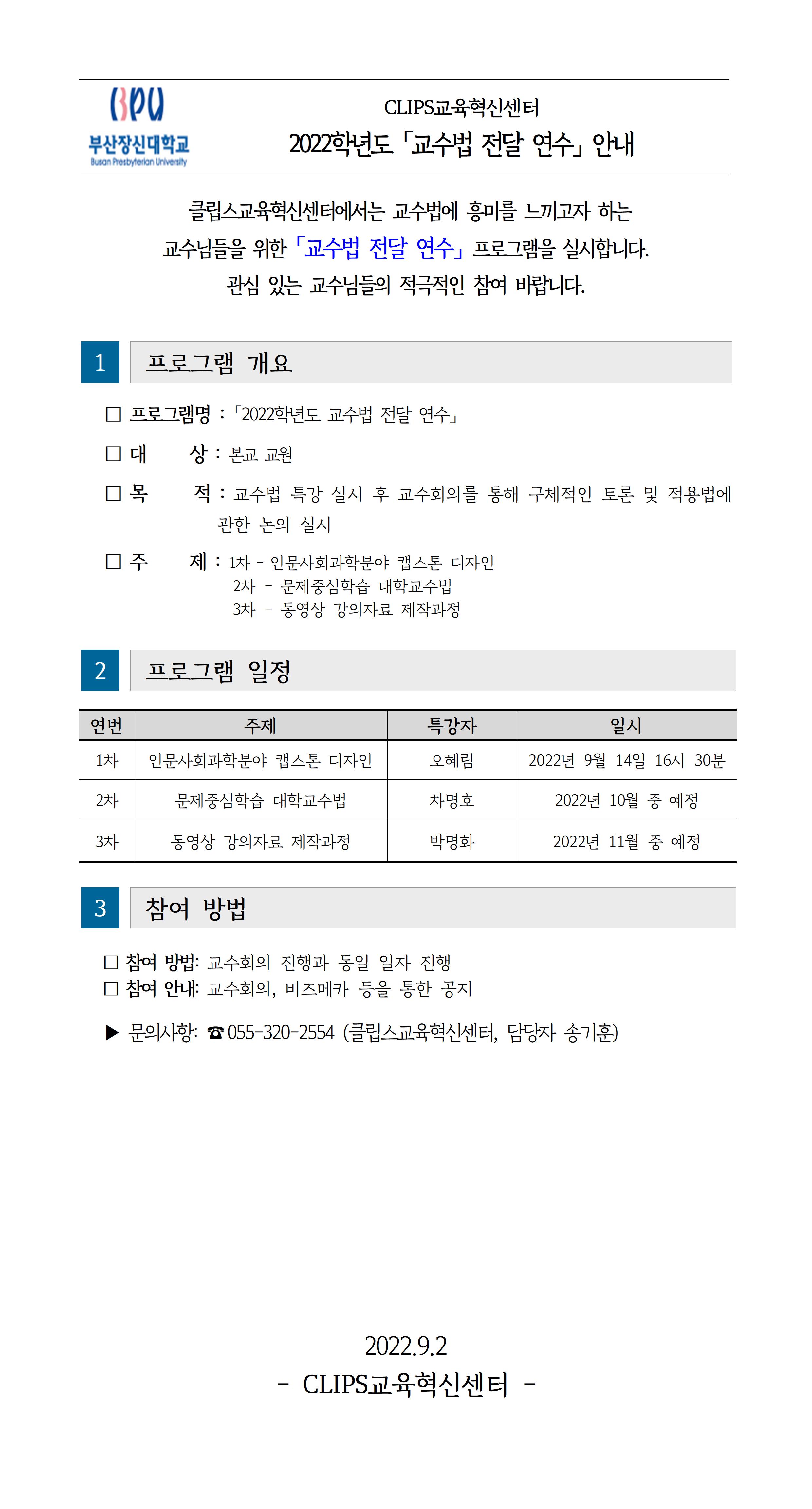 2022Çг⵵ 2Çб⠱³¼ö¹ý Àü´Þ¿¬¼ö Ư°­À» ´ÙÀ½°ú °°ÀÌ ½Ç½ÃÇϰíÀÚ ÇÏ´Ï ±³¼ö´ÔµéÀÇ ¸¹Àº °ü½É ºÎʵ右´Ï´Ù.
